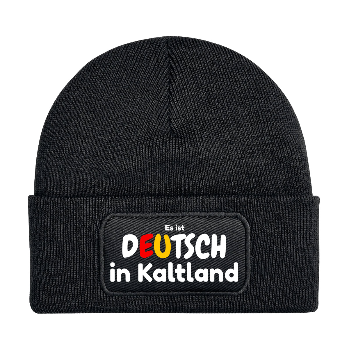 Lustige Beanie-Mütze: „Es ist Deutsch in Kaltland“. Party-Mütze. Apres-Ski-Mütze.
