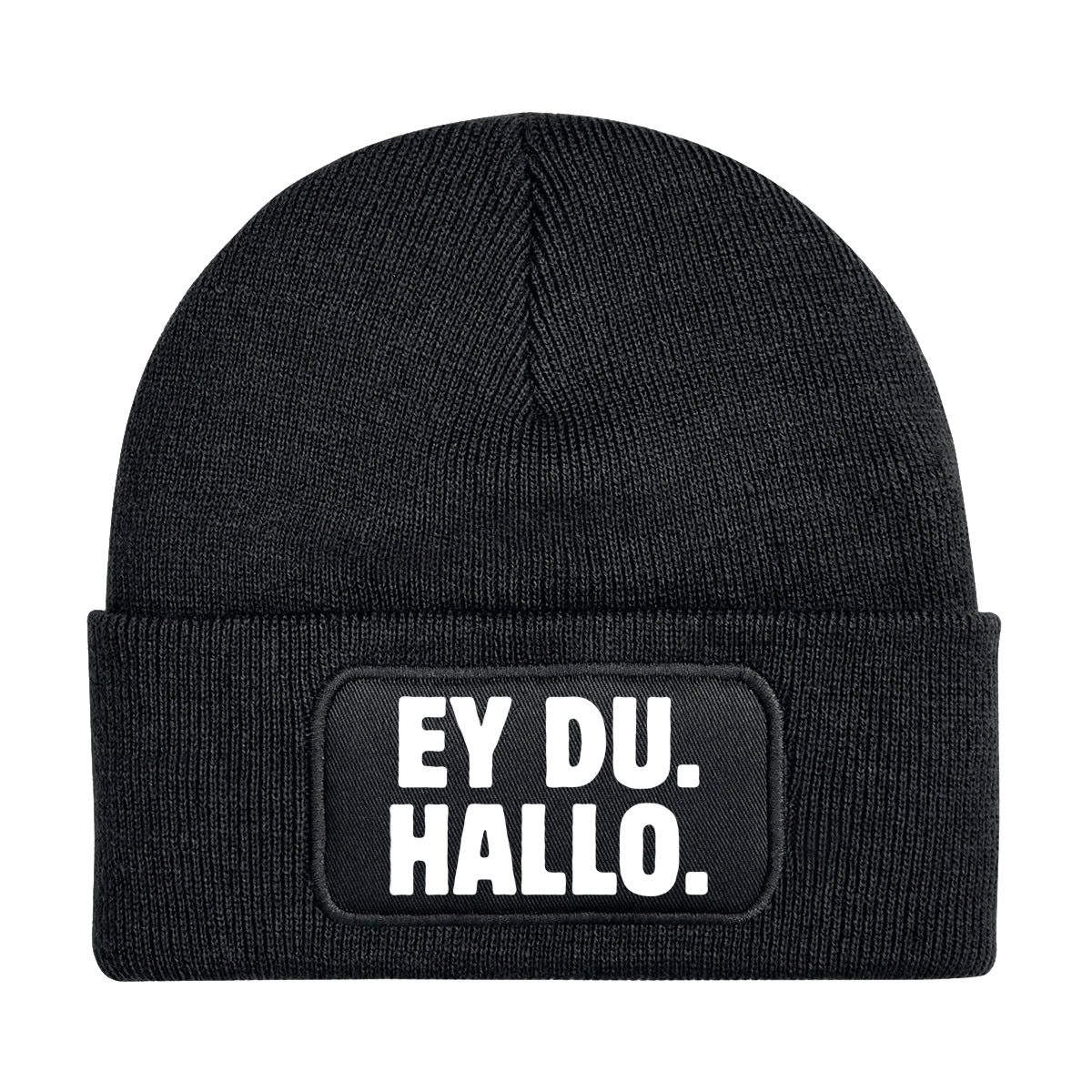 Lustige Beanie-Mütze: „Ey Du. Hallo.“. Wintermütze. Partymütze.
