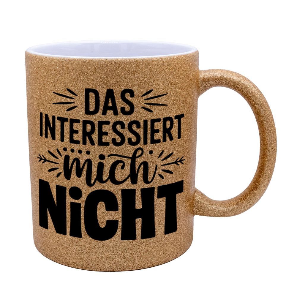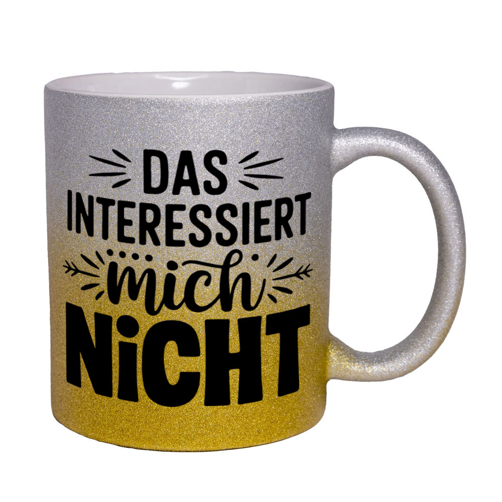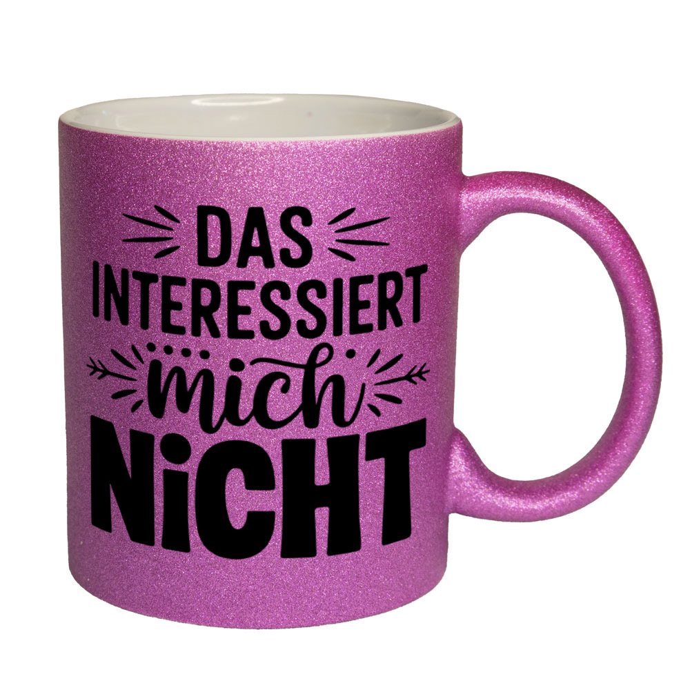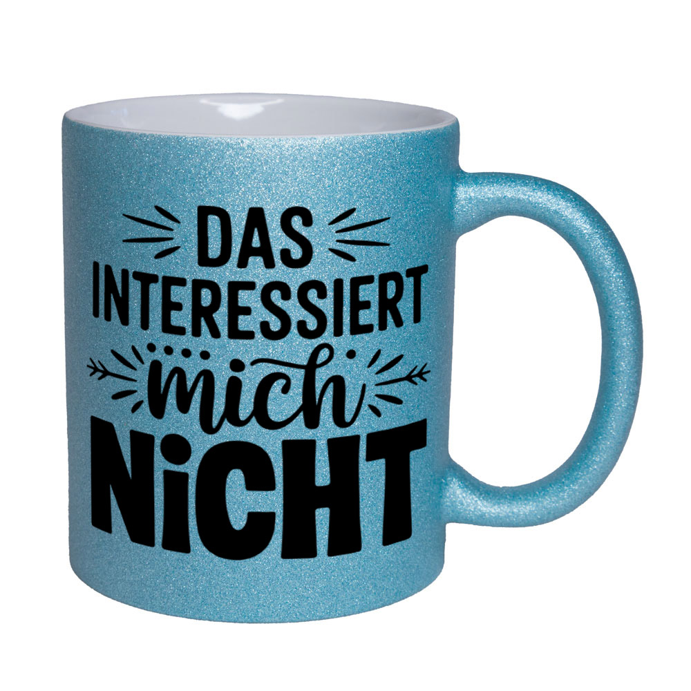 Lustige Spruch-Glitzertasse „Das interessiert mich nicht“