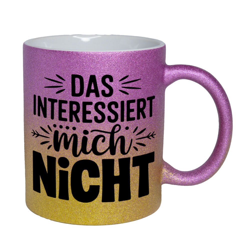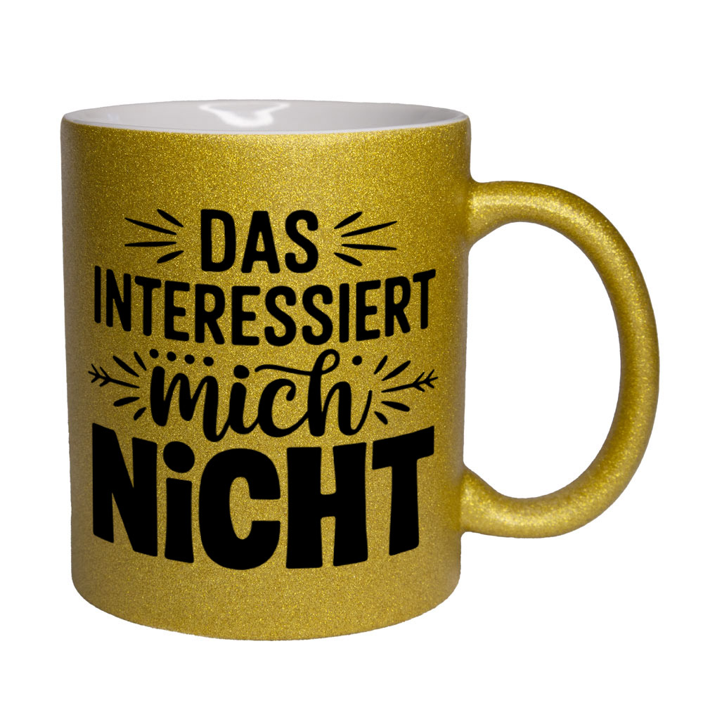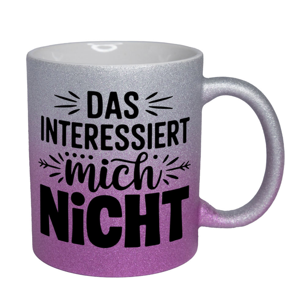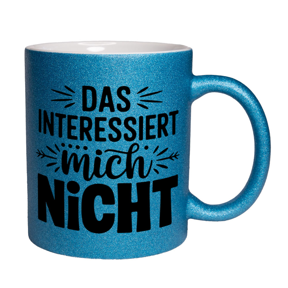 Lustige Spruch-Glitzertasse „Das interessiert mich nicht“