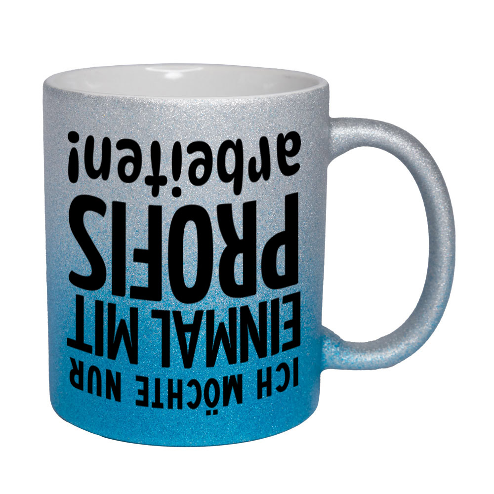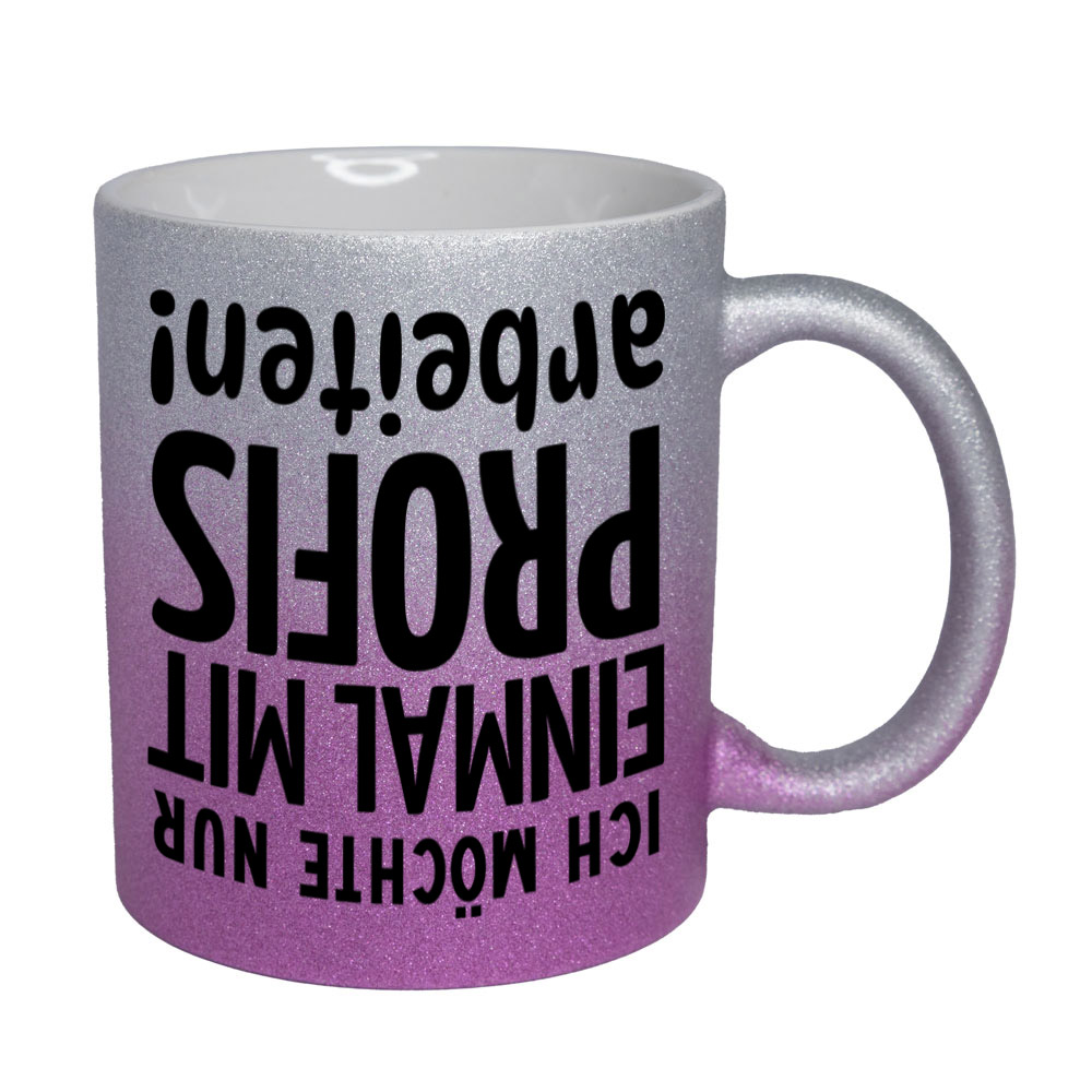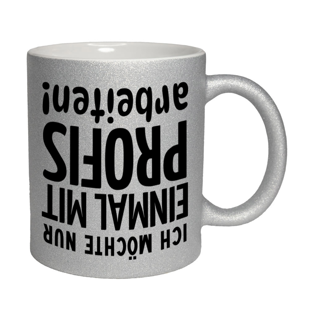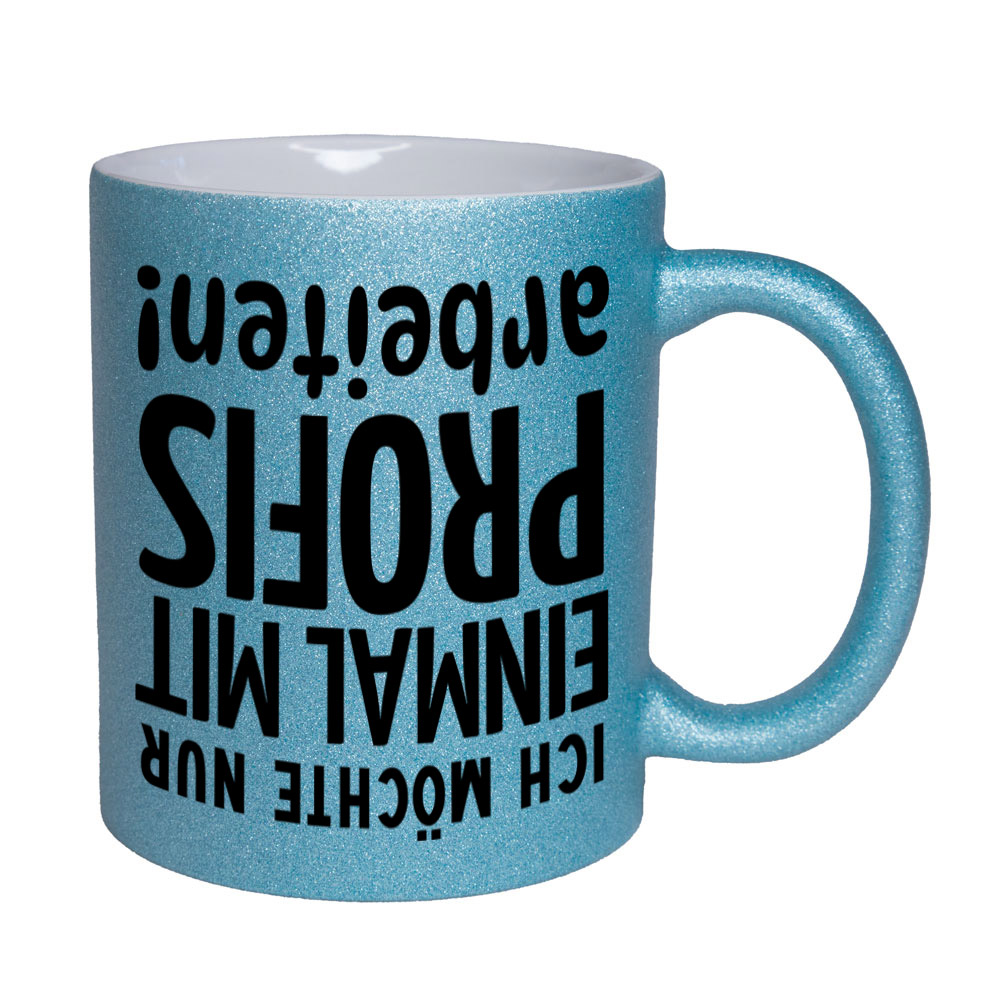 Lustige Spruch-Glitzertasse „Ich möchte nur einmal mit Profis arbeiten“