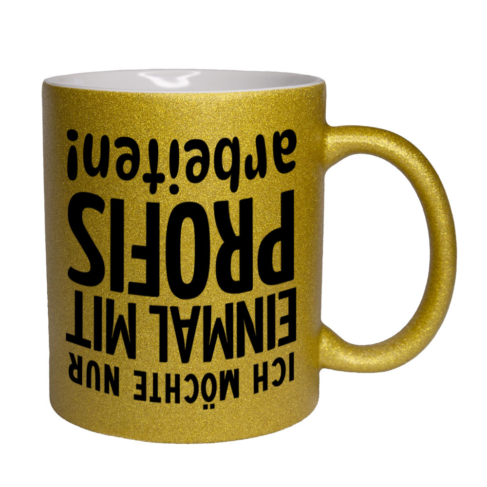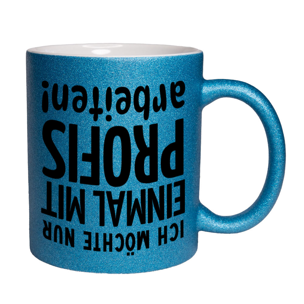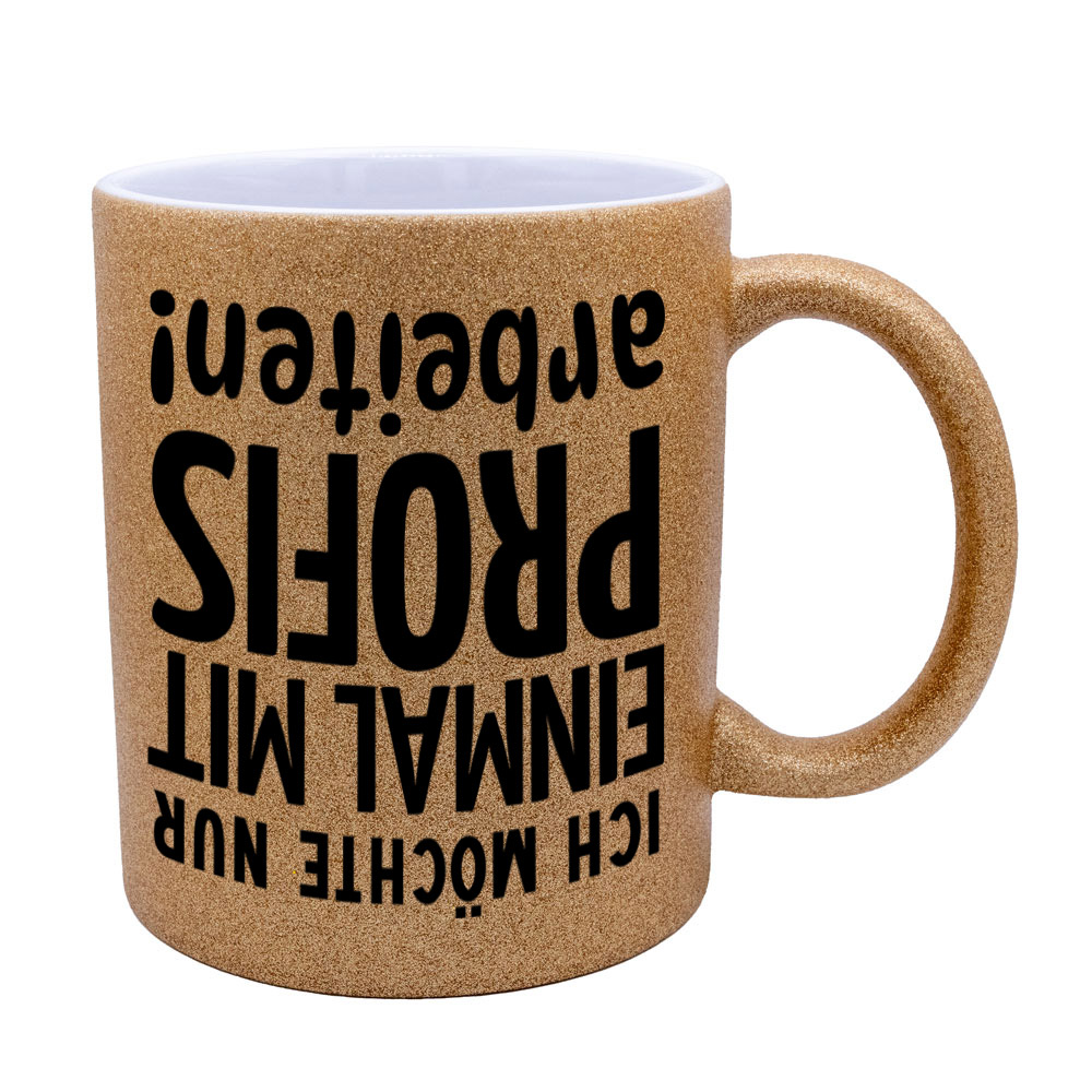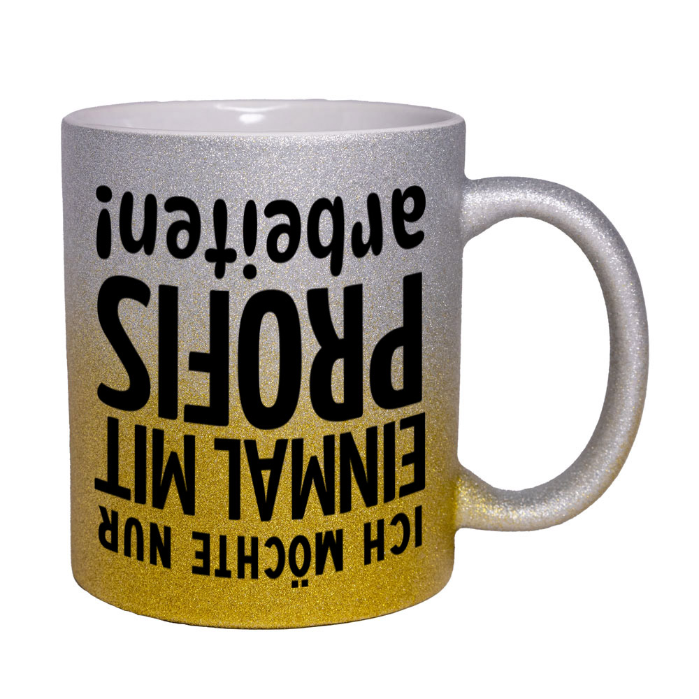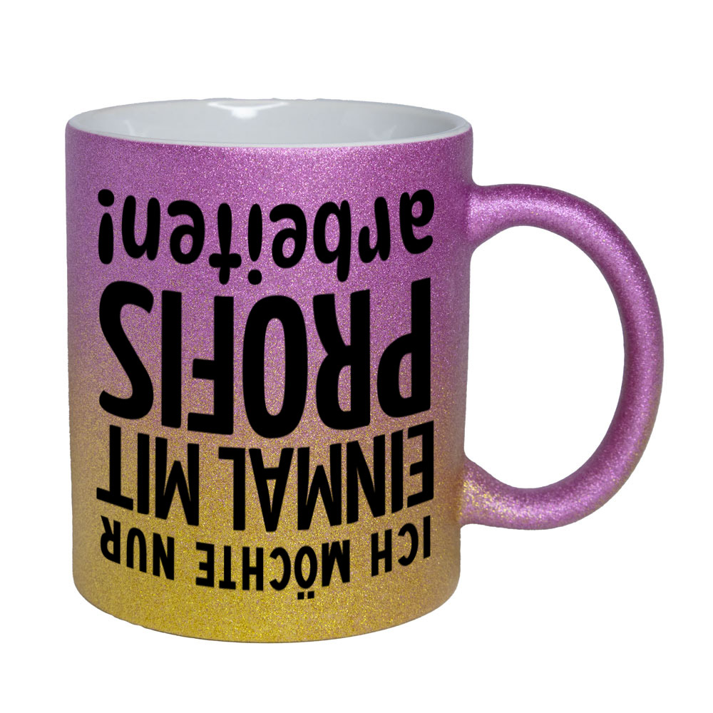 Lustige Spruch-Glitzertasse „Ich möchte nur einmal mit Profis arbeiten“