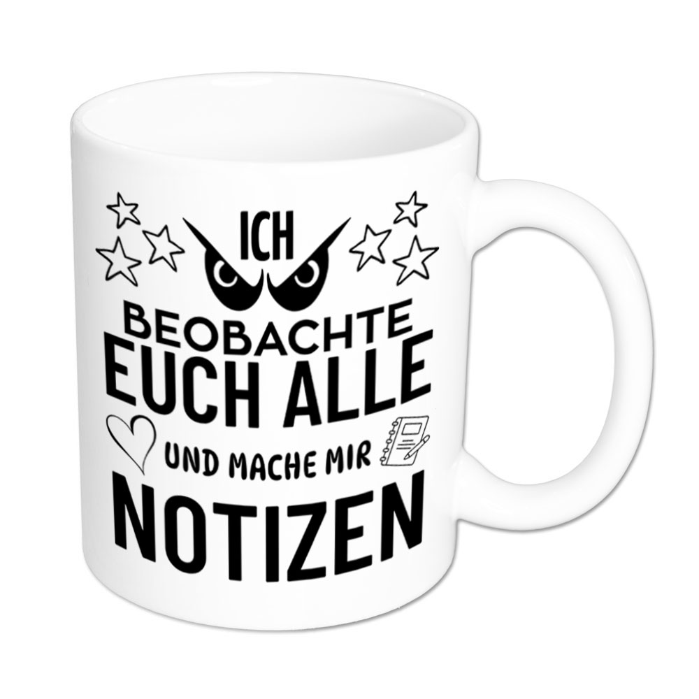 Lustige Spruch-Tasse „Ich beobachte euch alle und mache mir Notizen“