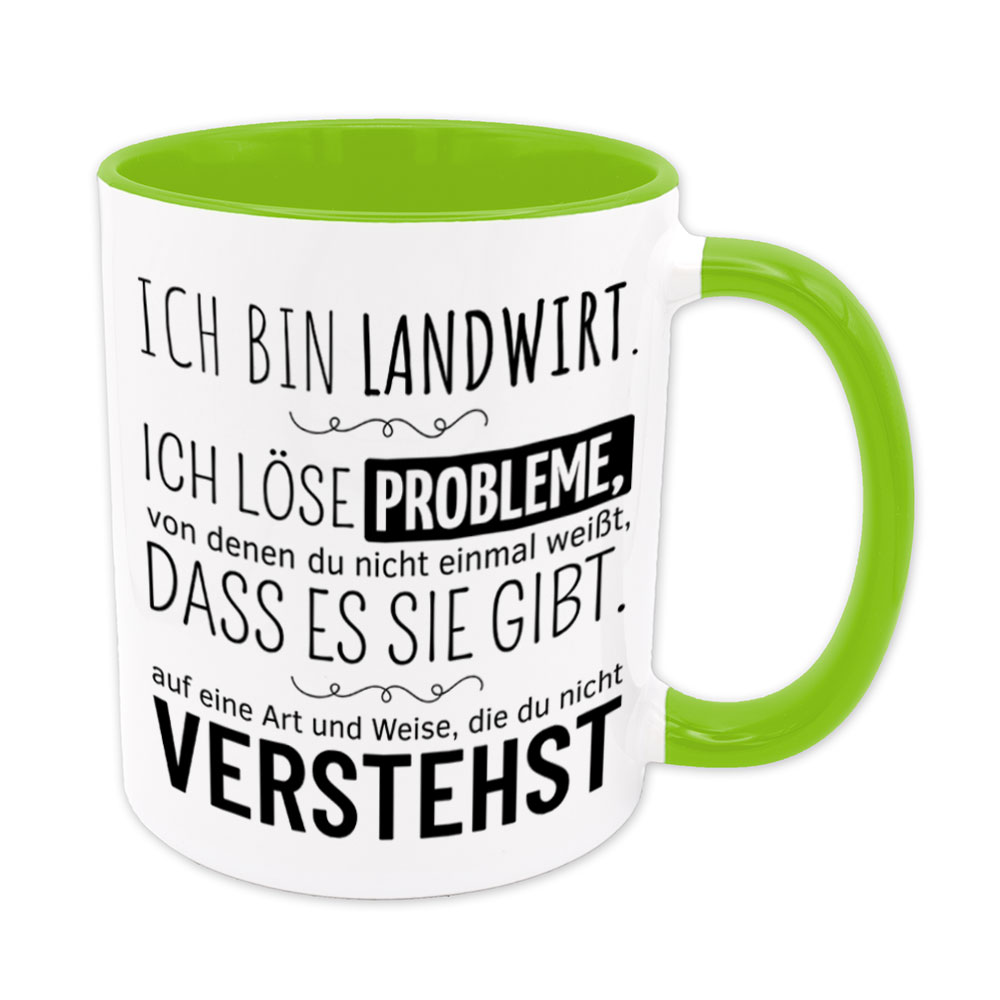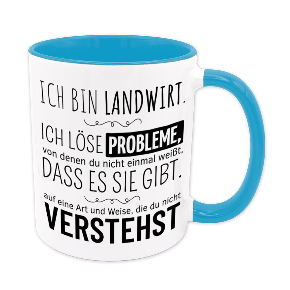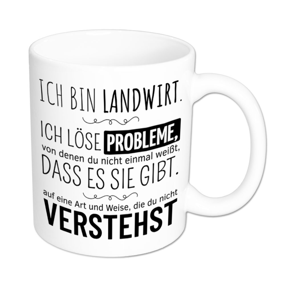 Lustige Spruch-Tasse „Ich bin Landwirt. Ich löse Probleme, von denen du nicht einmal weißt, dass es sie gibt, auf eine Art und Weise, die du nicht verstehst.“