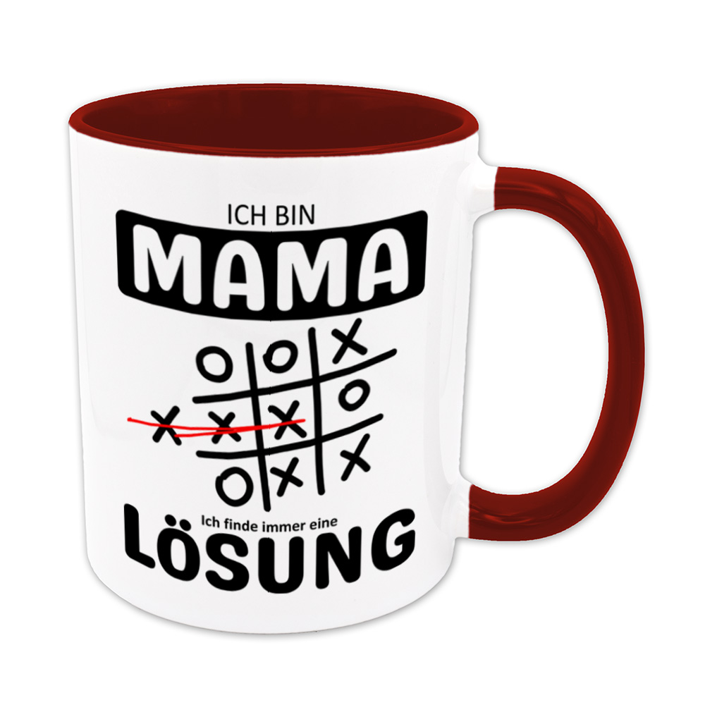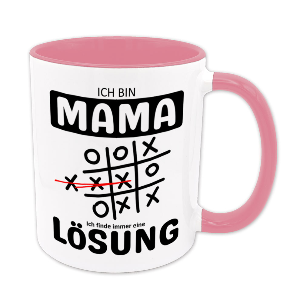 Lustige Spruch-Tasse „Ich bin Mama. Ich finde immer eine Lösung“. Tic Tac Toe – Tasse