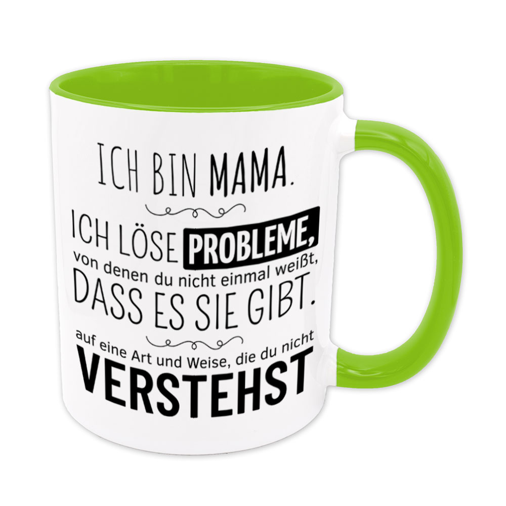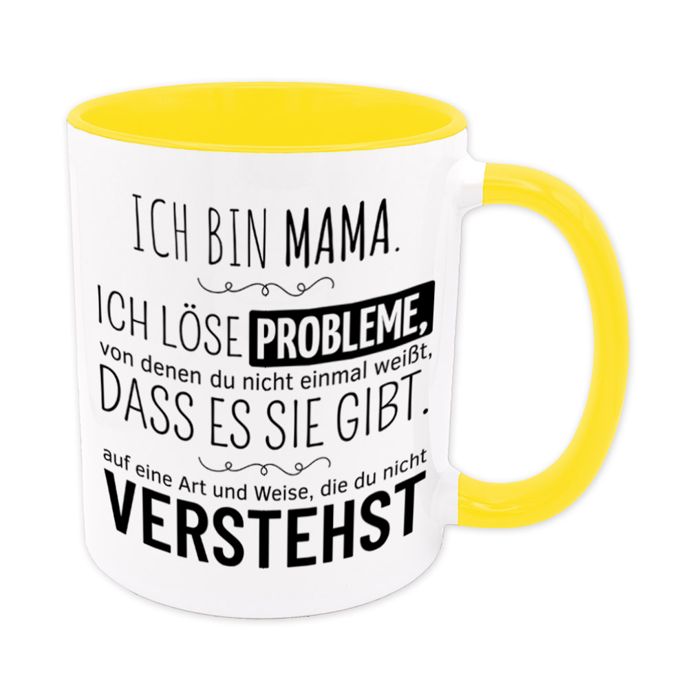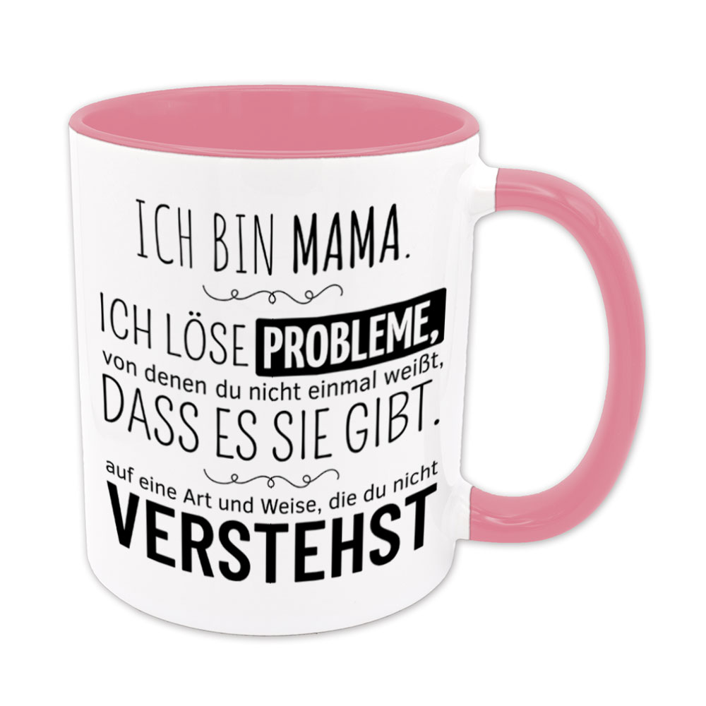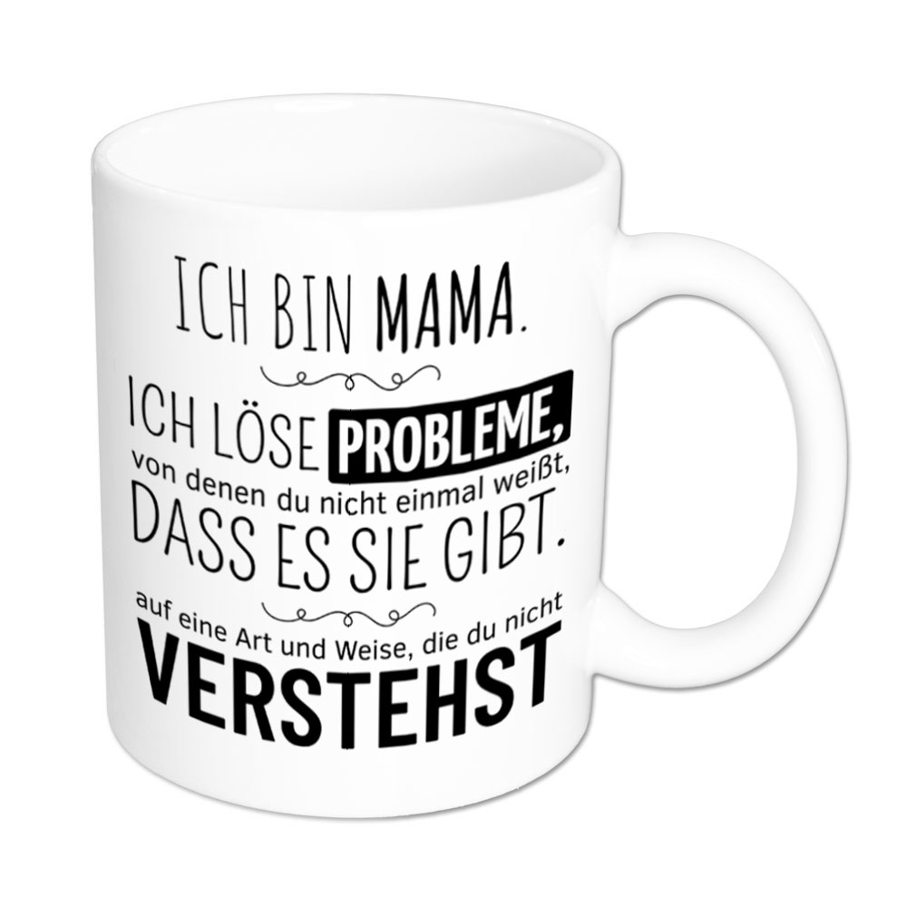Lustige Spruch-Tasse „Ich bin Mama. Ich löse Probleme, von denen du nicht einmal weißt, dass es sie gibt, auf eine Art und Weise, die du nicht verstehst.“