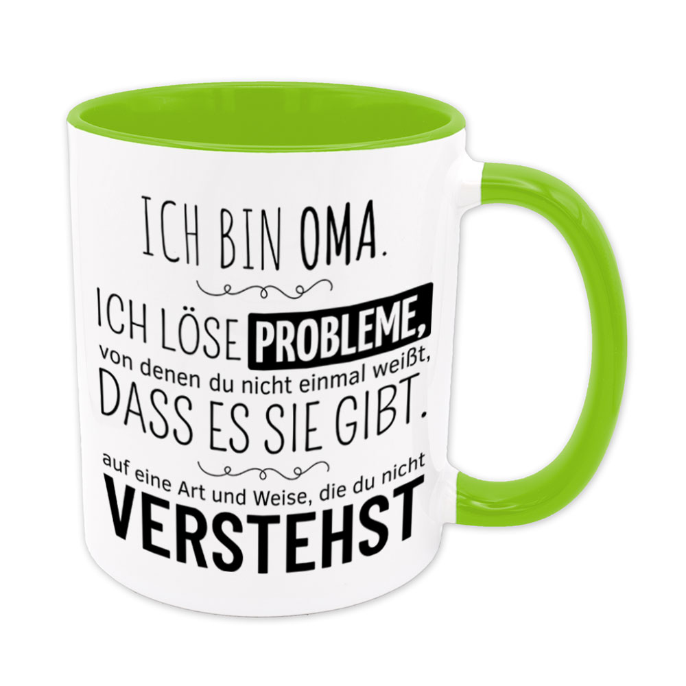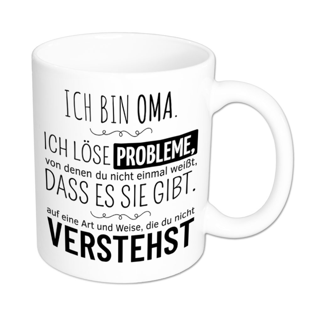 Lustige Spruch-Tasse „Ich bin Oma. Ich löse Probleme, von denen du nicht einmal weißt, dass es sie gibt, auf eine Art und Weise, die du nicht verstehst.“
