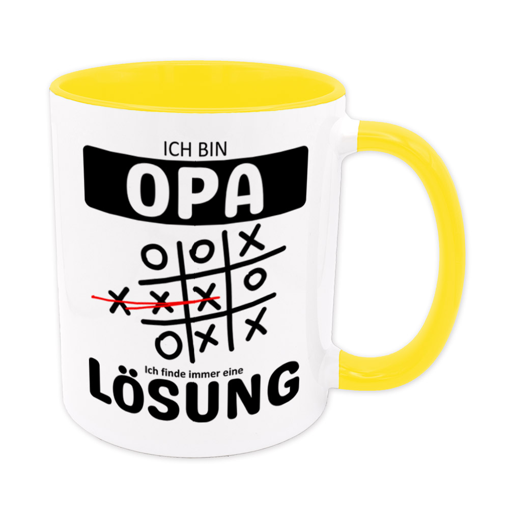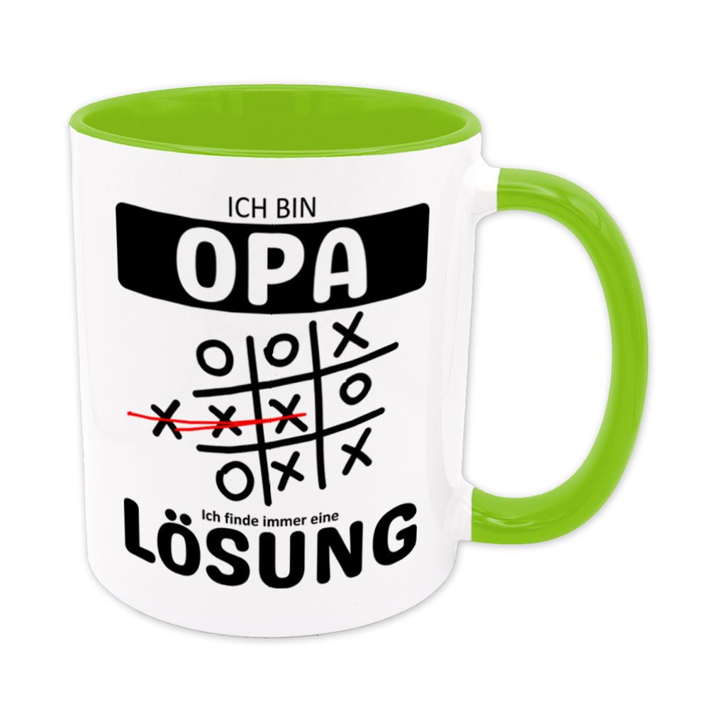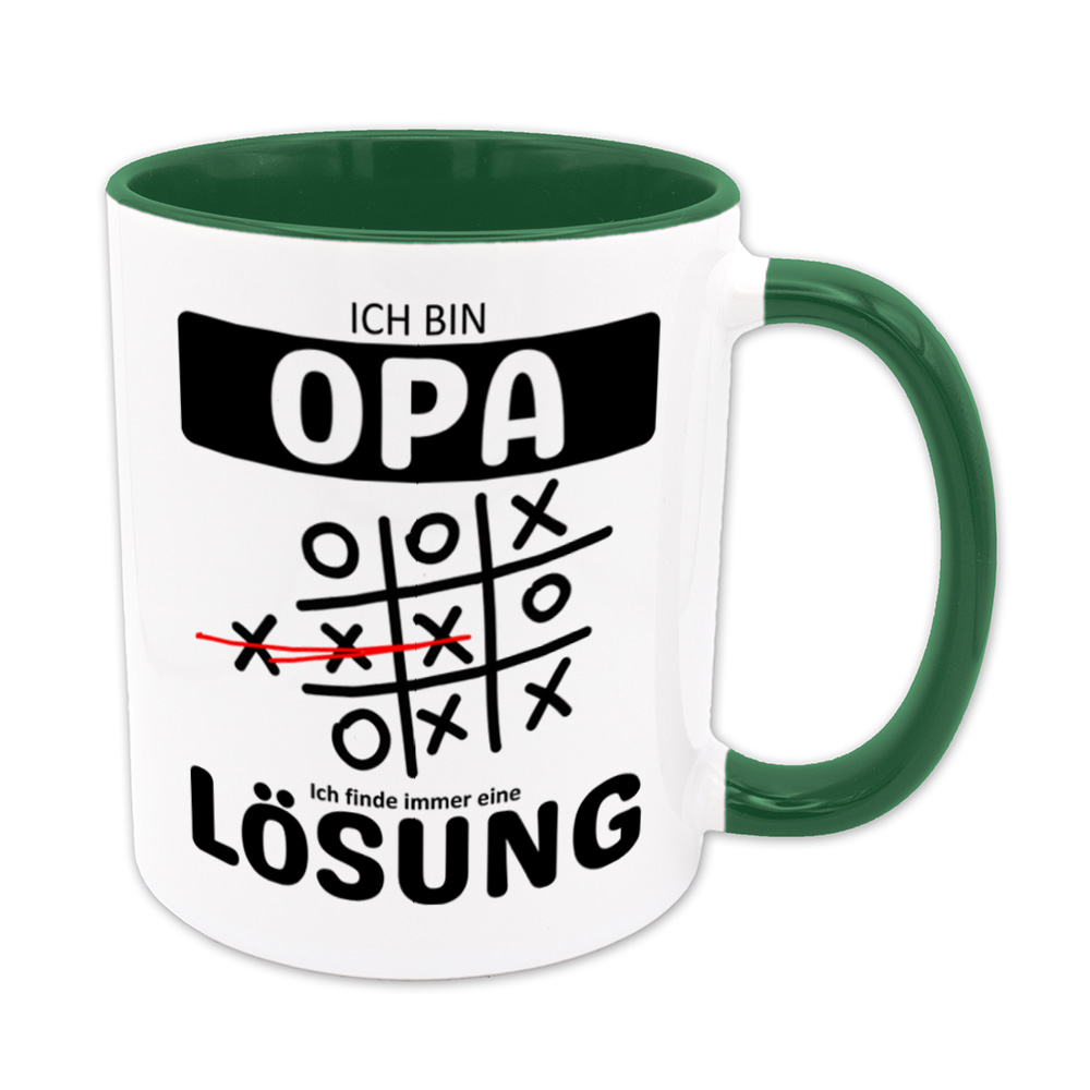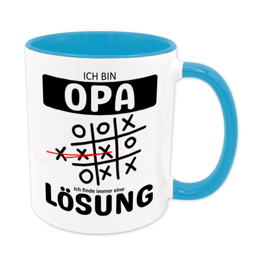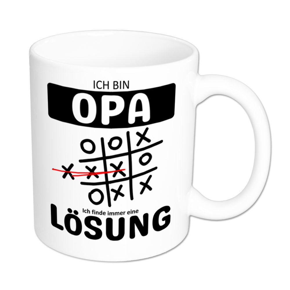 Lustige Spruch-Tasse „Ich bin Opa. Ich finde immer eine Lösung“. Tic Tac Toe – Tasse
