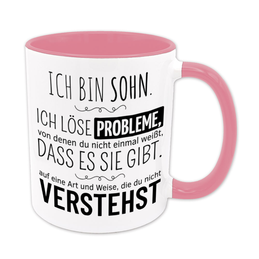 Lustige Spruch-Tasse „Ich bin Sohn. Ich löse Probleme, von denen du nicht einmal weißt, dass es sie gibt, auf eine Art und Weise, die du nicht verstehst.“