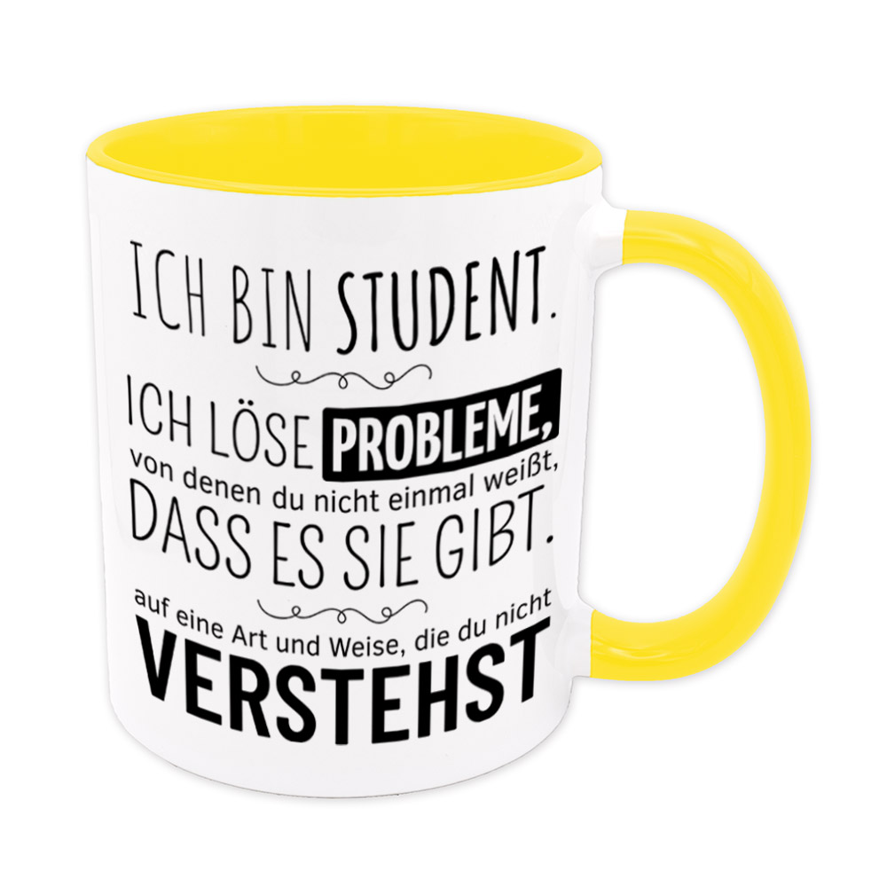 Lustige Spruch-Tasse „Ich bin Student. Ich löse Probleme, von denen du nicht einmal weißt, dass es sie gibt, auf eine Art und Weise, die du nicht verstehst.“