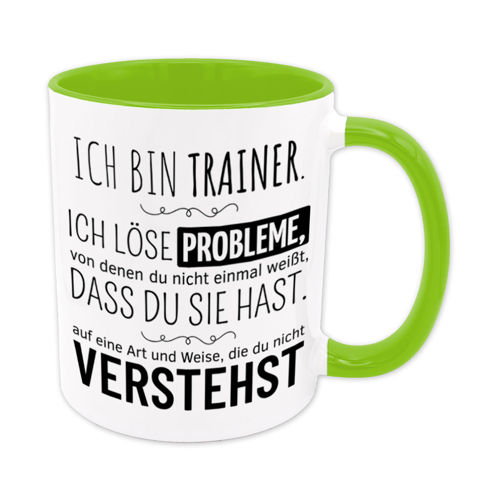 Diese Sprüchetasse ist ein ideales Geschenk für alle Trainer. Berufetasse.